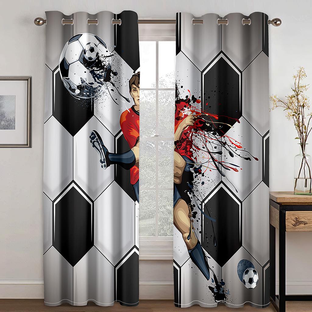 Занавески для домашнего декора для любителей футбола, детские любимые футбольные занавески, 2 панели, декор для гостиной, спальни, детской комнаты
