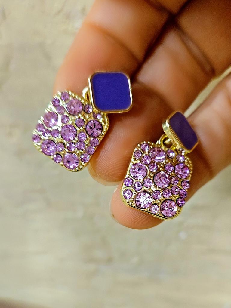 Новые винтажные фиолетовые блестящие кристальные геометрические женские серьги, сдержанные милые изящные блестящие серьги-подвески, ювелирные изделия