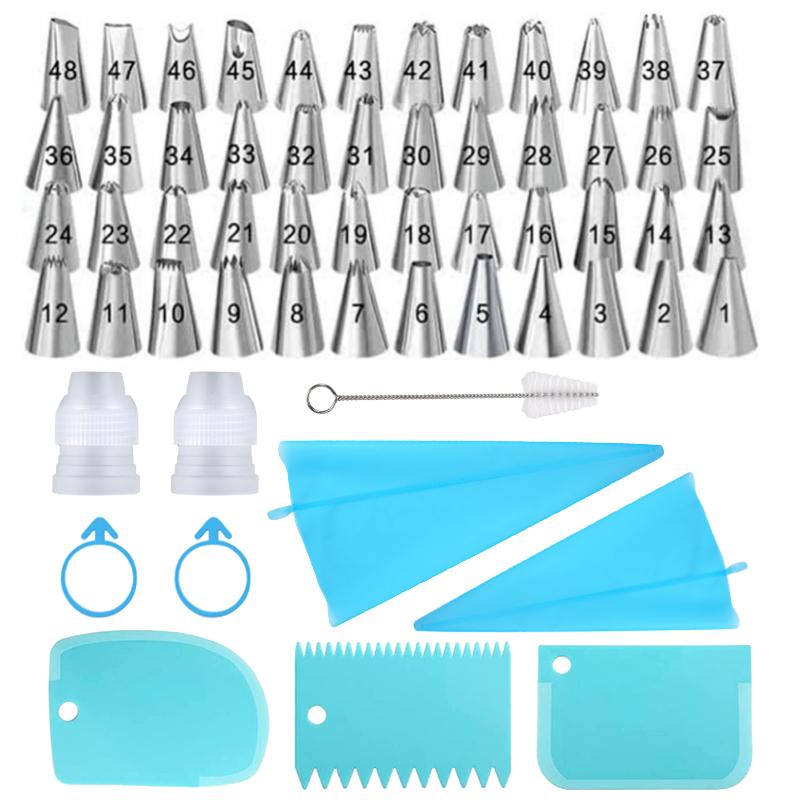 Набор из 61 кондитерского мешка и насадок, набор для украшения тортов с насадками из нержавеющей стали, многоразовые силиконовые кондитерские мешки, соединители