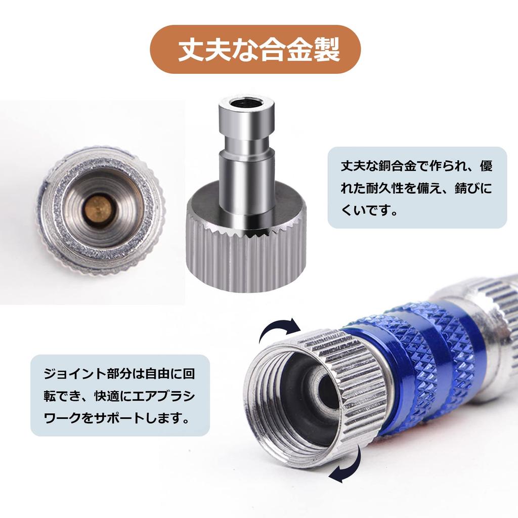 [Изготовлен из прочного сплава, сверхлегкий] Изготовлен из прочного сплава, соединительная часть может свободно вращаться. Соединения очень гладкие, и даже если шланг перекрутится, соединения будут вращаться естественным образом, обеспечивая комфортную работу с аэрографом.. Кроме того, он чрезвычайно легкий, его вес составляет около 9,6 г, что максимально снижает нагрузку во время работы.. При расслабленном рисовании суставы двигаются очень плавно, что повышает эффективность работы.