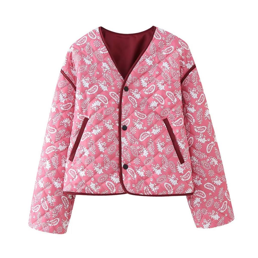 Контрастное лоскутное пальто с принтом, модная женская куртка, зимняя, с V-образным вырезом, на одной пуговице, теплое пальто, женская уличная верхняя одежда