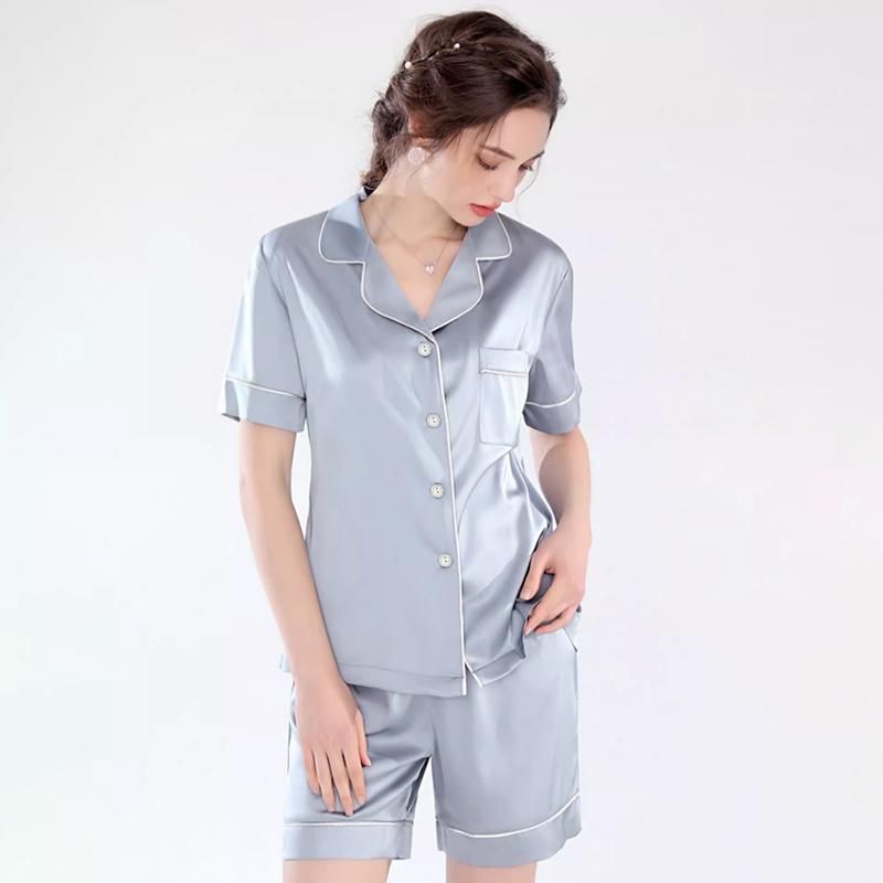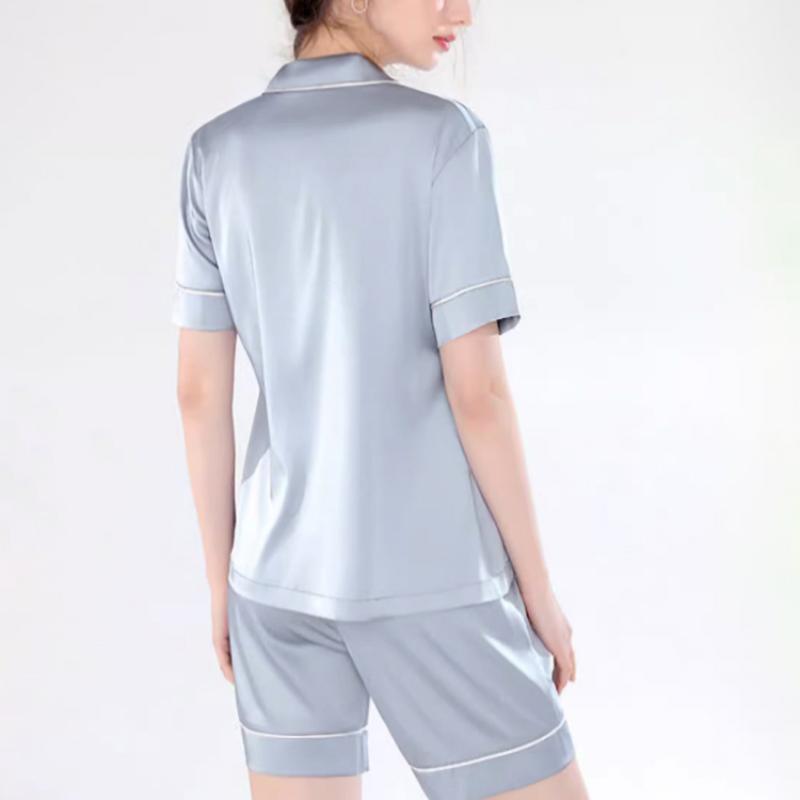 Женский пижамный комплект с застежкой на пуговицы и шортами из 2 предметов, пижамы с V-образным вырезом, мягкая ночная рубашка, домашняя одежда для лета