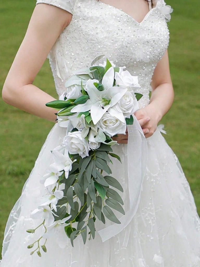 Букет невесты Каскадные свадебные букеты для невесты Искусственные свадебные букеты для свадебной церемонии и годовщины Декор на День святого Валентина