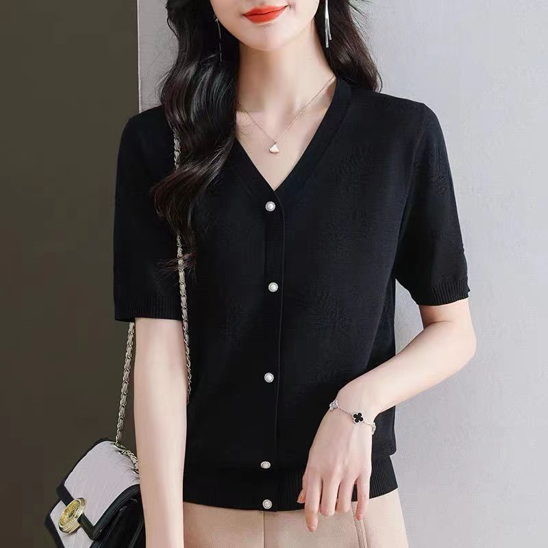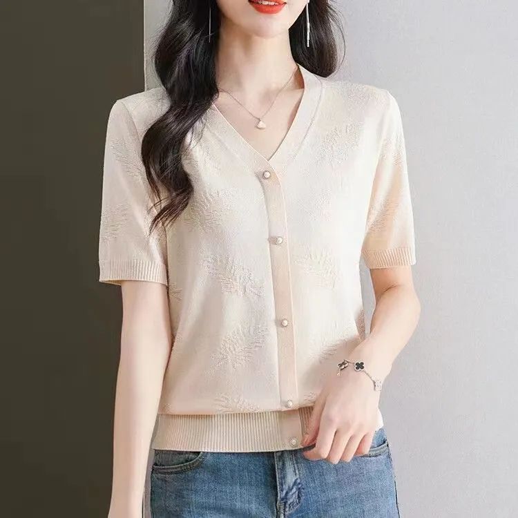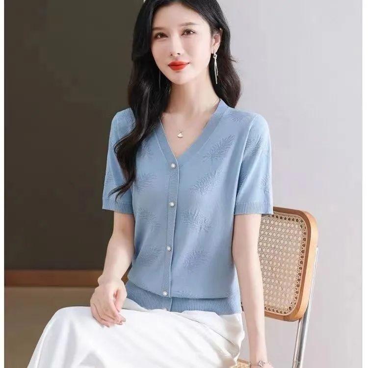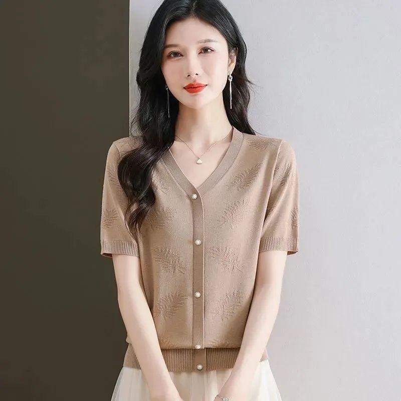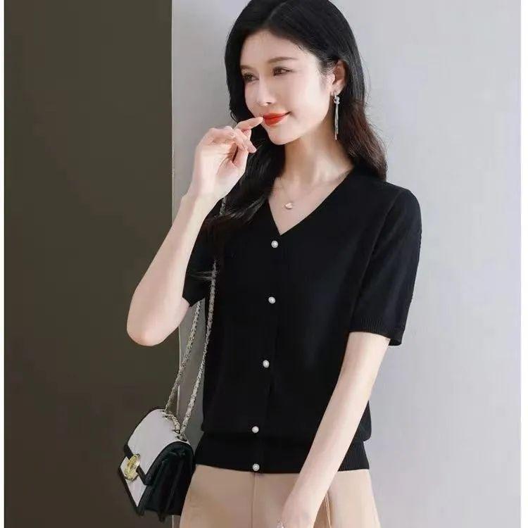 Однотонный трикотажный летний топ для мам, новая тонкая трикотажная футболка с короткими рукавами из ледяного шелка, стильная маленькая рубашка