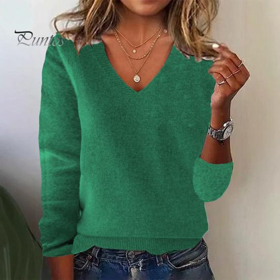 Подчеркните свой стиль с помощью этого женского свитера — универсального цельного топа, созданного для повседневного шика.. V-образный вырез и длинные рукава создают классический образ, а однотонный цвет добавляет нотку изысканности..