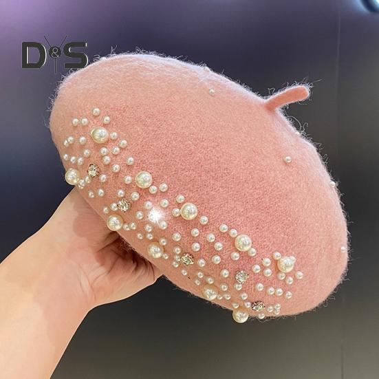 Женский берет с искусственным жемчугом и стразами, винтажная шерстяная шляпа в английском стиле без полей, однотонная, с регулируемыми лямками, кепка-тыква — купить товар онлайн с бесплатной доставкой по всему миру!
