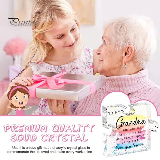 Это высококачественное акриловое украшение идеально подойдет для особых случаев, таких как дни рождения, День матери или День святого Валентина.. Покажите свою любовь и признательность старшей по возрасту женщине с помощью этого продуманного подарка. Изготовлен из прочного акрила, содержит слова благодарности, которые помогут выразить ваши чувства.. Уникальный дизайн в форме пазла добавит индивидуальности в интерьер вашего дома..