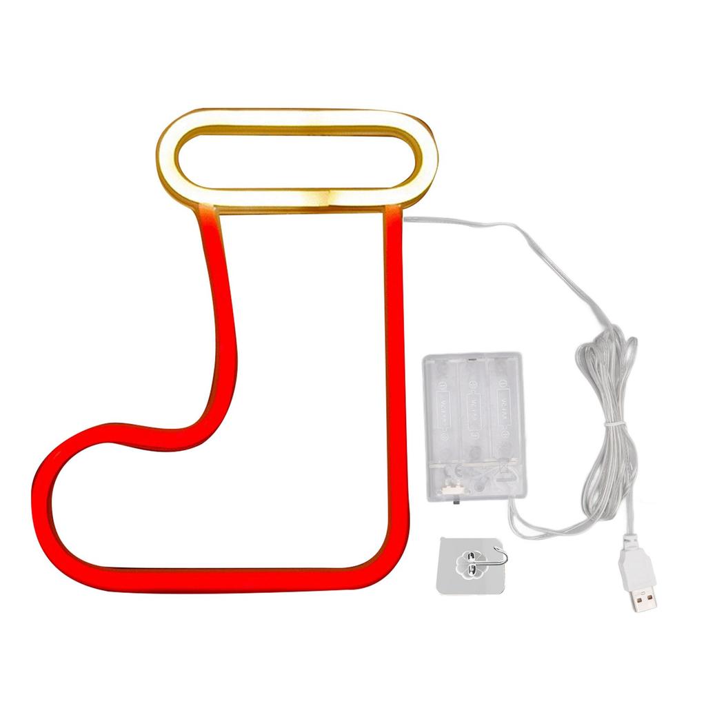 Рождественская неоновая светодиодная вывеска для рождественских сапог с питанием от батареи и зарядкой через USB, настенный декор