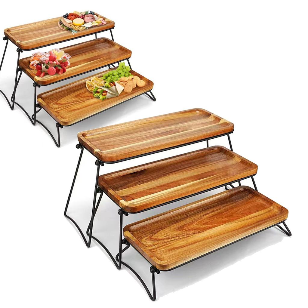 3-х уровневая сервировочная подставка, большой деревянный поднос для закусок, фруктов, тортов, деревянных изделий