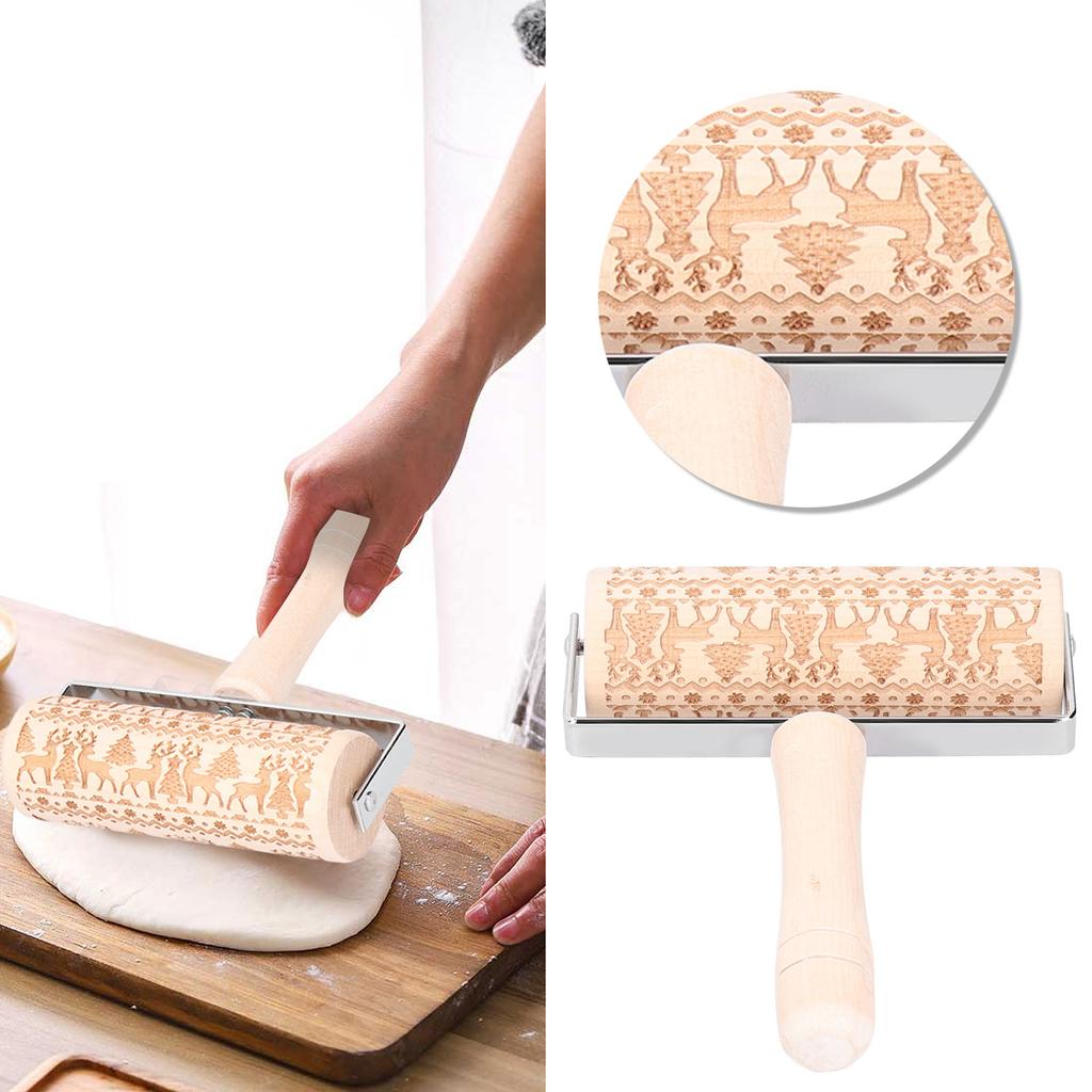 Рождественская скалка деревянная рождественская гравированная скалка для тиснения тесто палочка инструмент для выпечки лось