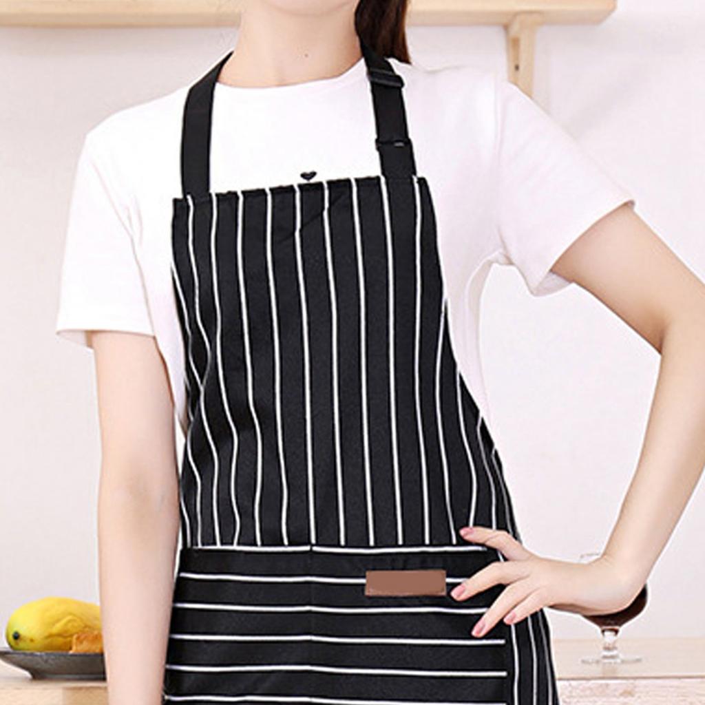 2 шт. Кухонный фартук для готовки с 2 карманами, регулируемый поварской фартук для мужчин и женщин, черная полоска