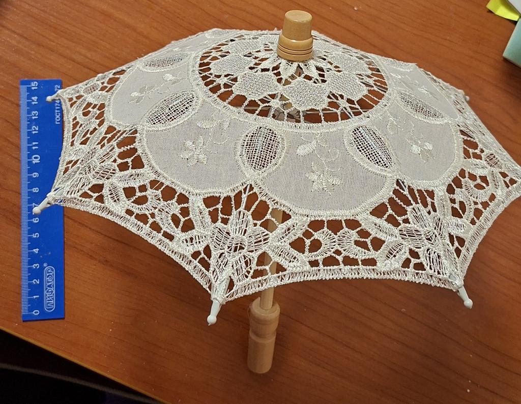 Не посмотрела, что маленький . Хотела большой , чтоб под солнцем ходить. А пришёл маленький игрушечный, свадебный, как потом прочитала . Ну а так стоит как сувенир. В следующий раз внимательнее буду.