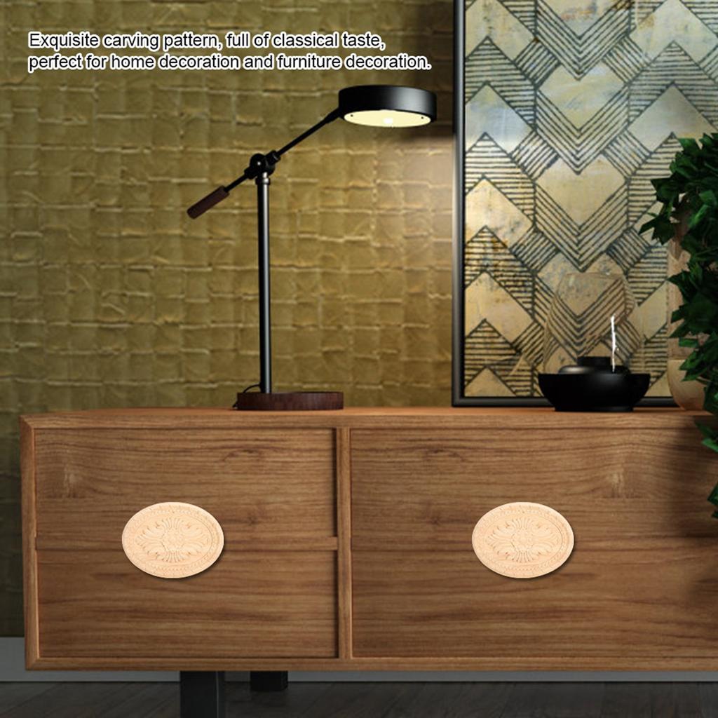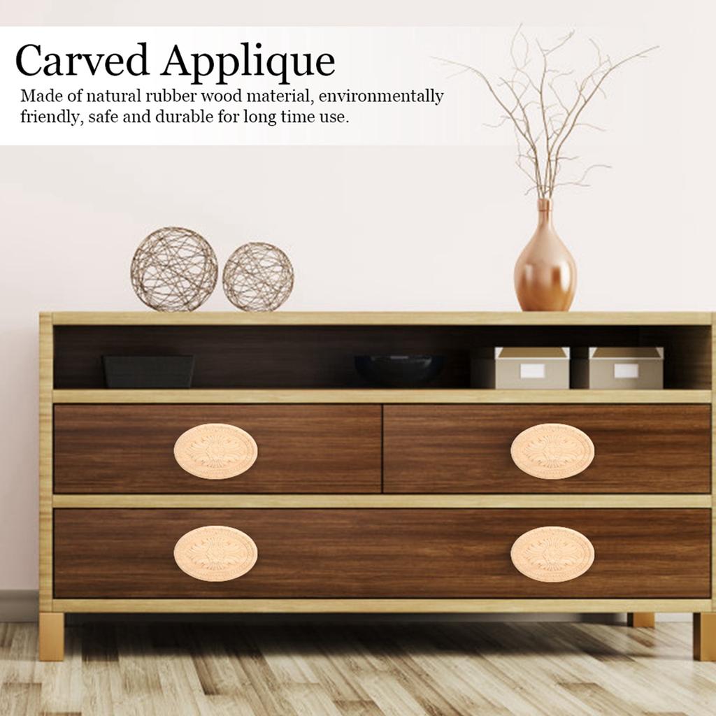 Деревянная резная накладка аппликация овальная резьба наклейка неокрашенная домашняя мебель декор