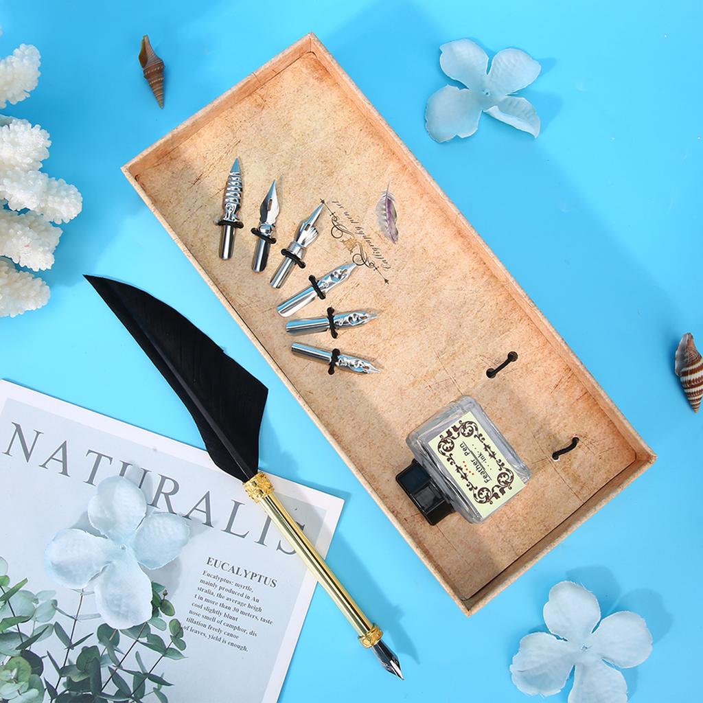 Винтажный простой стиль каллиграфические перьевые ручки набор студенческие ручки подарочная коробка на Рождество день рождения черный