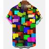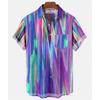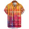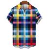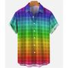 Крутая гавайская радужная разноцветная клетчатая рубашка для мужчин, свободного покроя, 3D, модная повседневная, с коротким рукавом, простая пляжная одежда на летних пуговицах