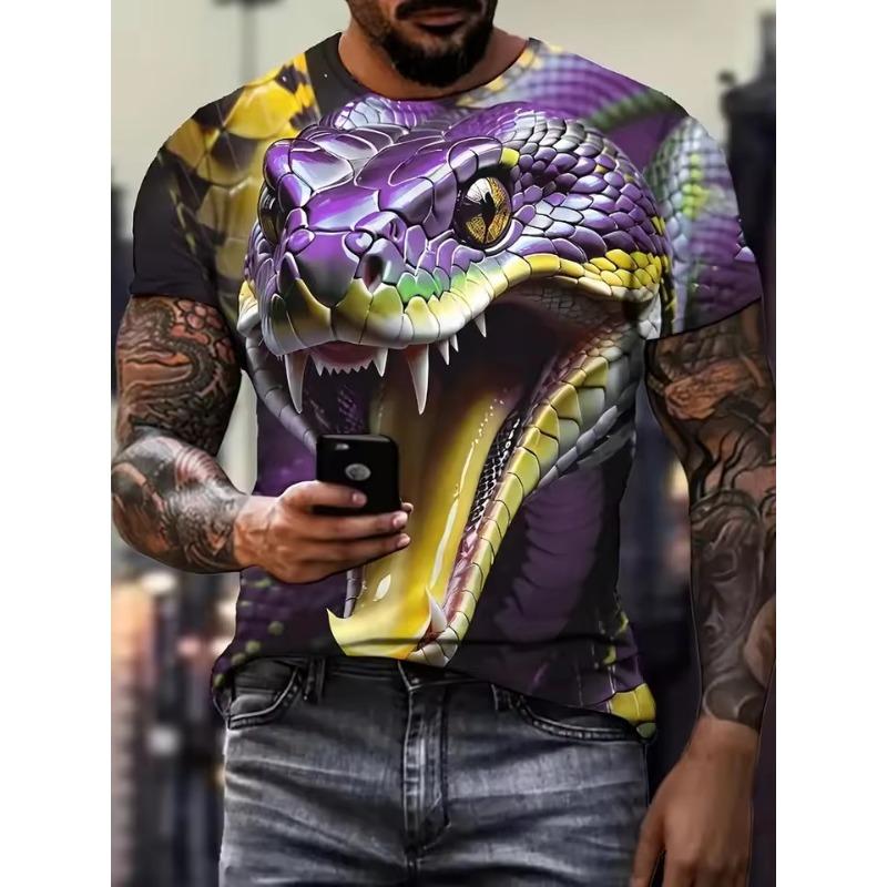 Футболки с 3D-принтом и рисунком змеи, мужские летние футболки с коротким рукавом и круглым вырезом, повседневные футболки, мужские футболки в стиле хип-хоп, уличная одежда
