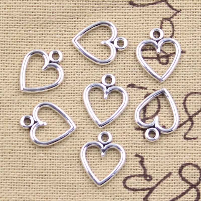 50 шт. Подвески в виде полых милых сердец 14x11 мм, старинные серебряные подвески, изготовление своими руками, тибетские ювелирные изделия ручной работы