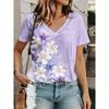 Женская футболка модная цветочная обычная топы с коротким рукавом V-образный вырез принт обычный крой повседневная повседневная фиолетовая летняя