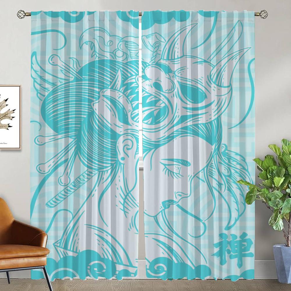 Японские шторы для гостиной, шторы для комнаты, 2 панели, шторы для домашнего интерьера, шторы, перегородки, украшения на Хэллоуин, кухня