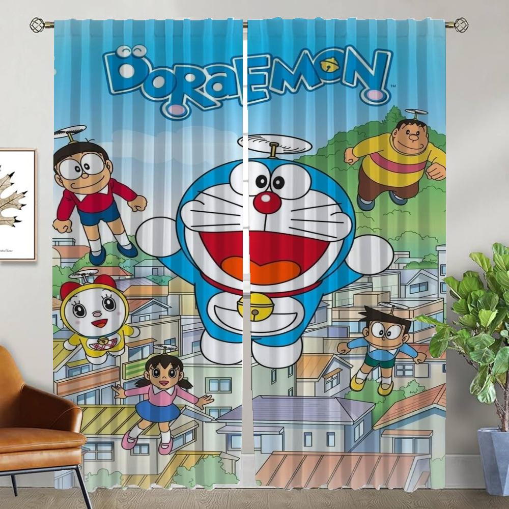 Шторы Дораэмон для спальни, шторы для комнаты, 2 панели, перегородка, шторы для домашнего интерьера, украшение на Хэллоуин