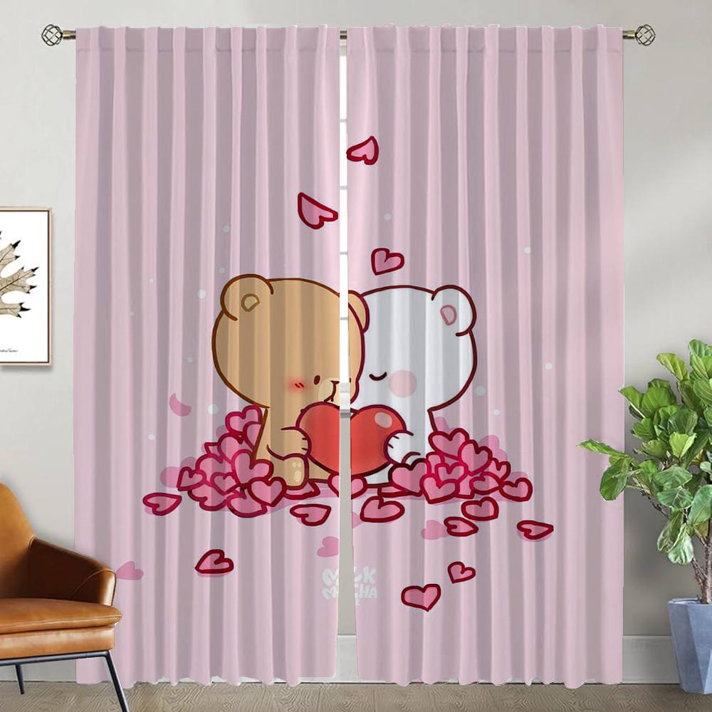 Kawaii Bear Curtains for Living Room Curtain for Room 2 Panel Halloween Decoration Shades Partition Home Interior Curtains Child
