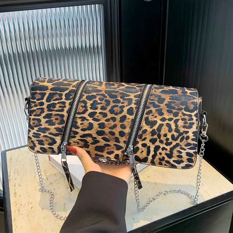 Сумка через плечо из искусственной кожи с цепочками для женщин, сумка-клатч с леопардовым принтом, сумка через плечо, женская модная дизайнерская сумка