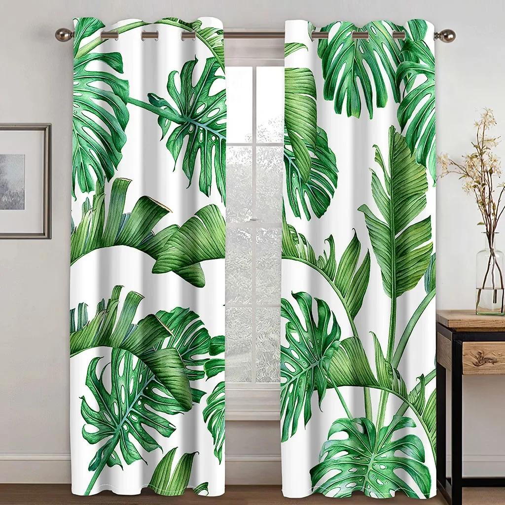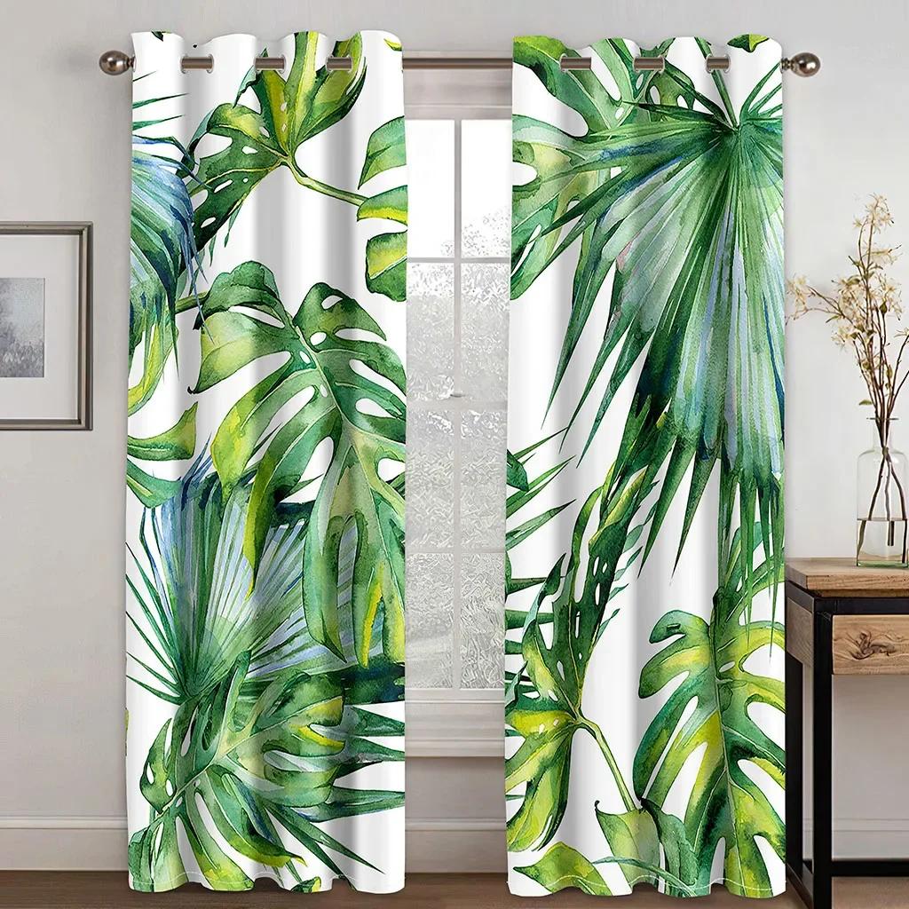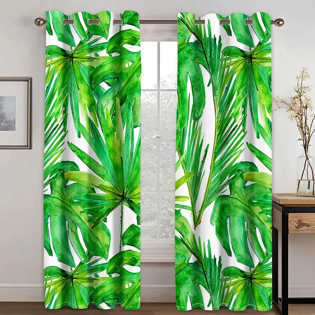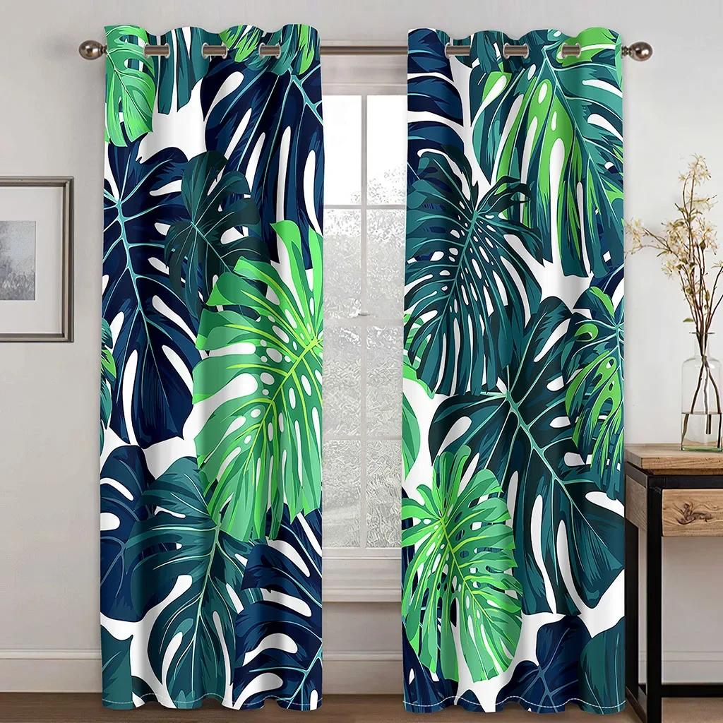 Элегантные тропические шторы с принтом листьев и ушка для домашнего декора, люверсы для оформления окон для спальни, офиса, кухни, окон