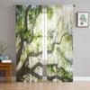 Тюлевые шторы с зелеными ветвями растений и листьями для украшения гостиной, спальни, прозрачная шифоновая прозрачная оконная занавеска из вуали