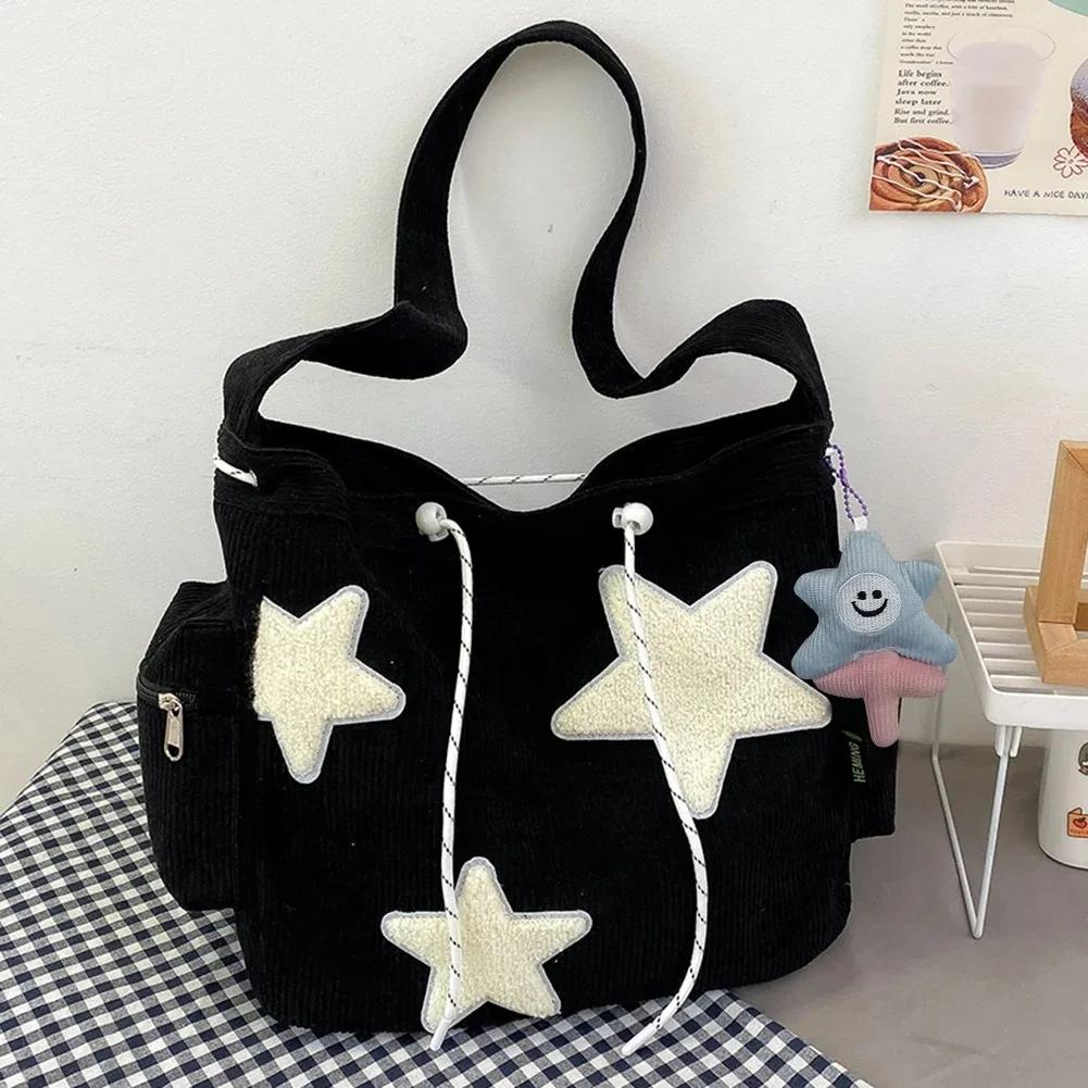 Женская бархатная сумка через плечо с узором в виде звезд, простая, вместительная, сумка на плечо для девочек, дорожная, школьная, рюкзак для книг