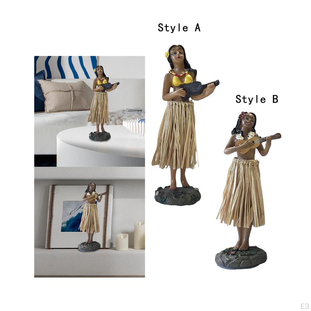 - 【Реалистичные детали】: Гавайская танцовщица в винтажном стиле позирует, мини-кукла на приборной панели с юбкой из искусственной рафии и красивыми цветочными украшениями, красивая и изысканная.