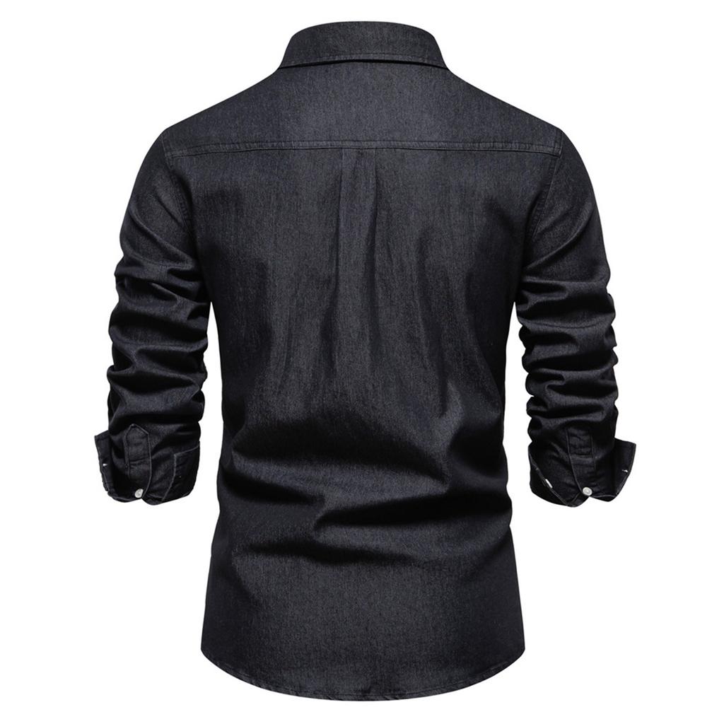 Мужская однотонная джинсовая рубашка с лацканами и пуговицами, мужская повседневная рубашка с длинным рукавом и карманом, выстиранная