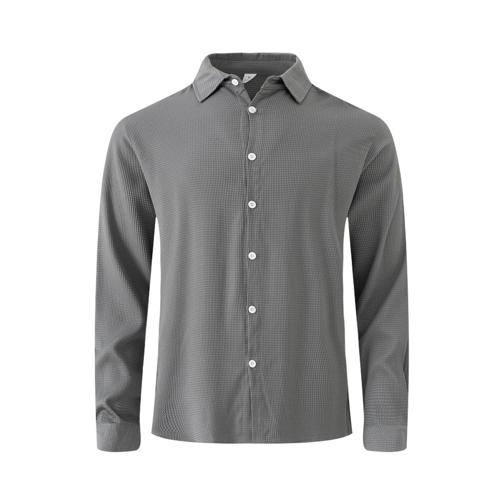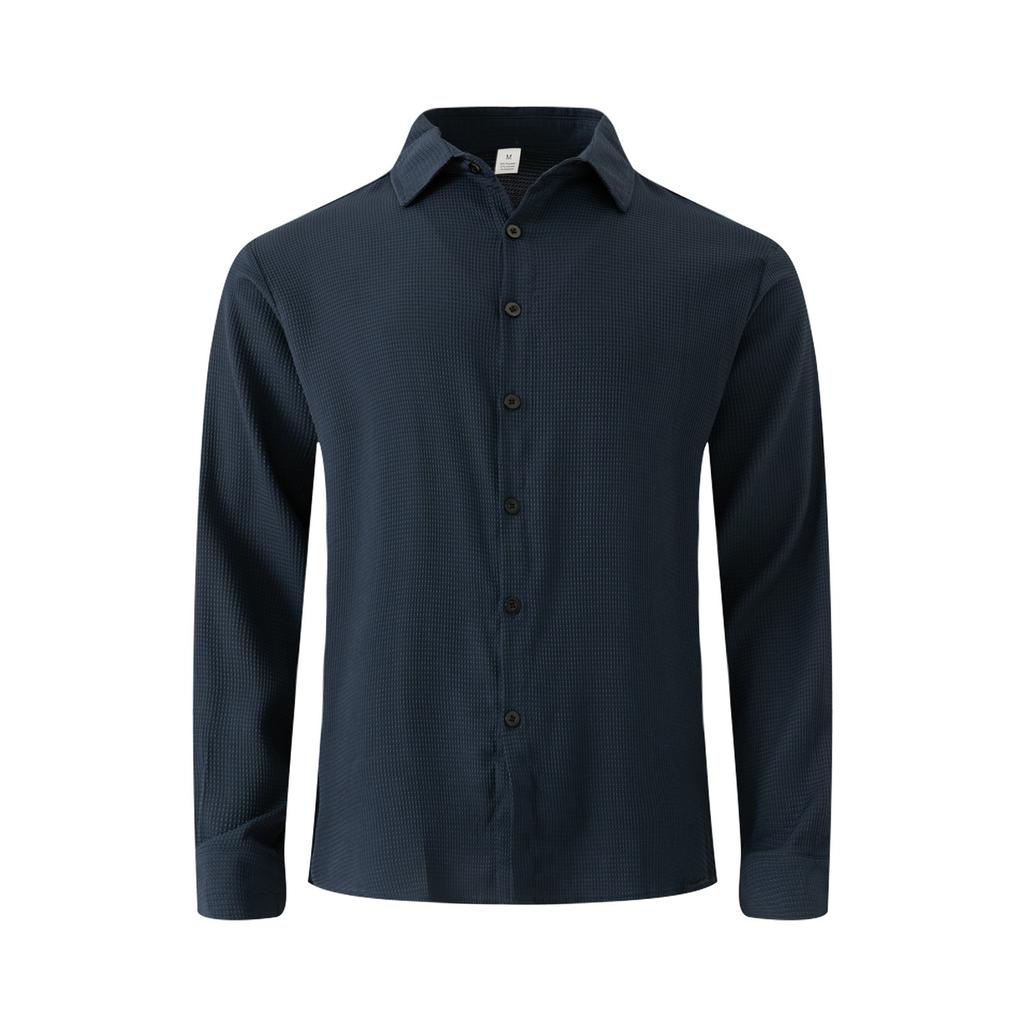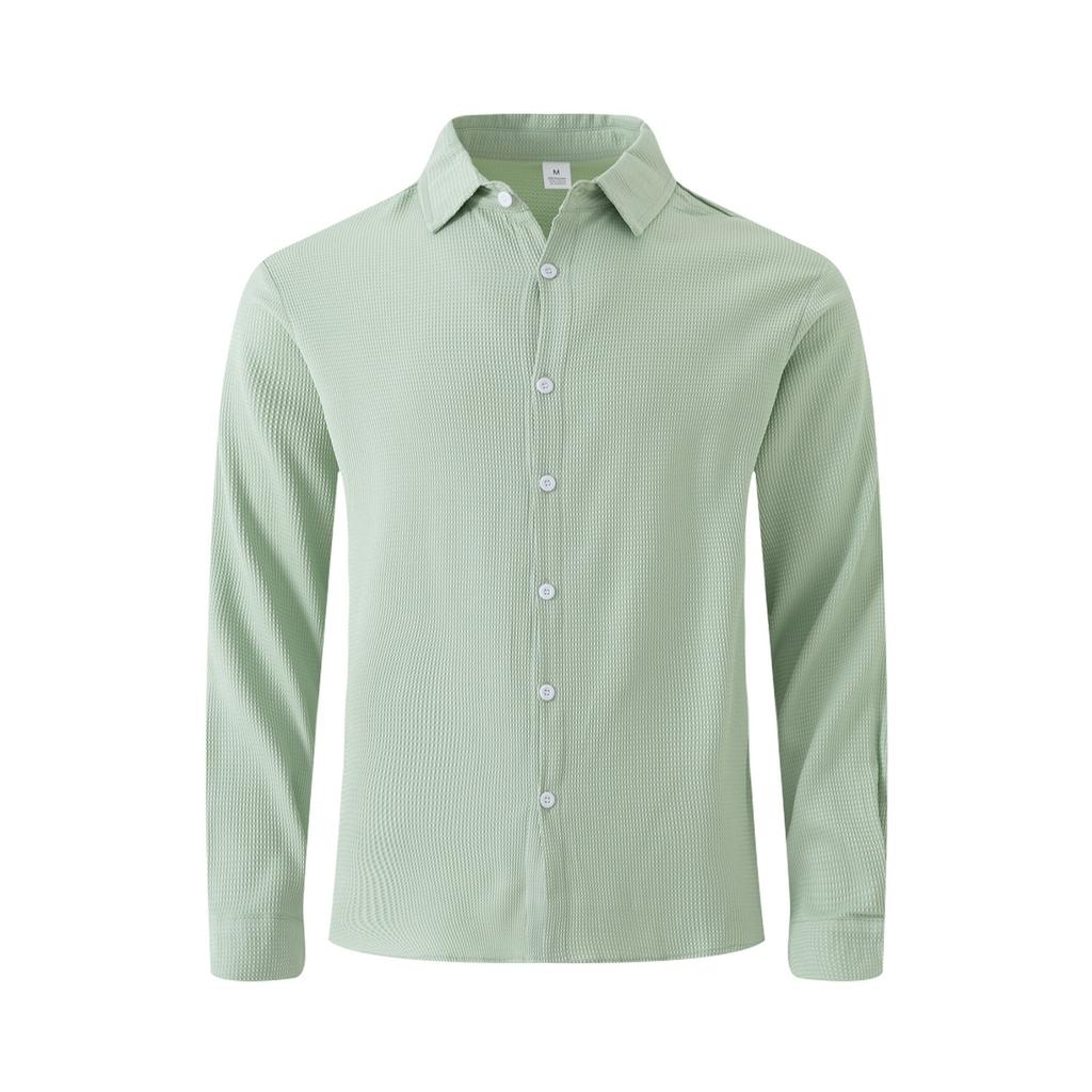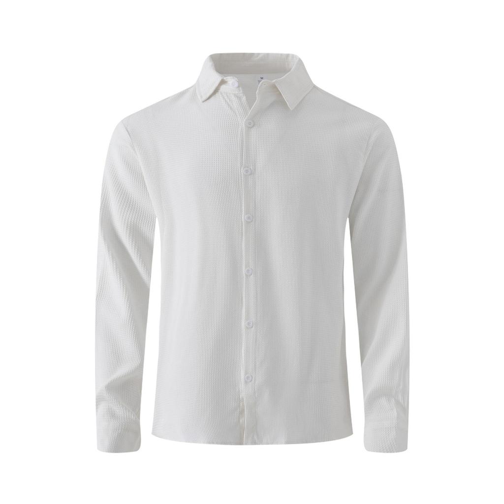 Мужская рубашка с длинным рукавом и лацканами, однотонная, с пуговицами, мужская повседневная однобортная рубашка с длинным рукавом в горошек