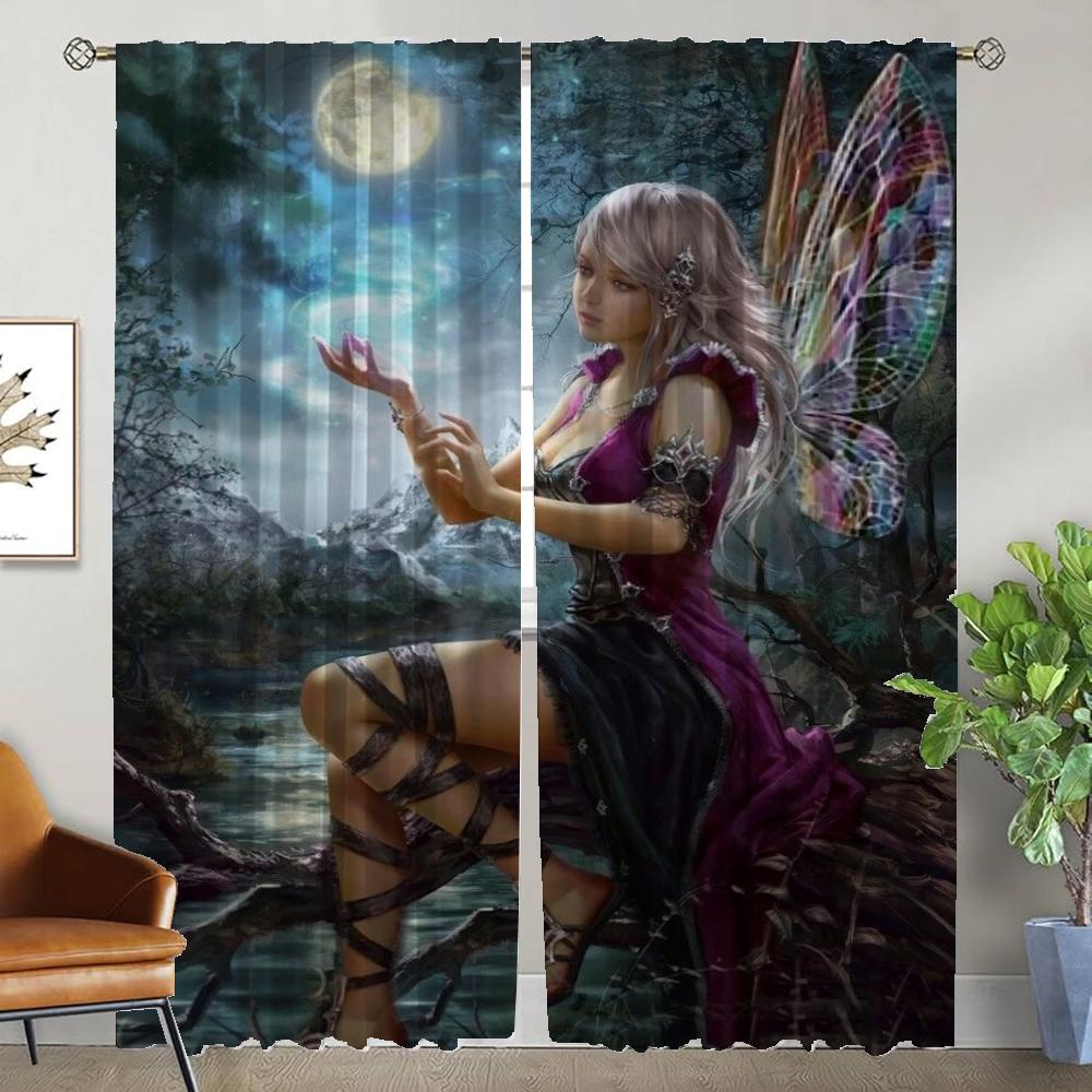 Тюль для спальни, женский эльф, перегородка, противомоскитные шторы для камеры, украшение на Хэллоуин, затемняющие шторы, 2 шт.