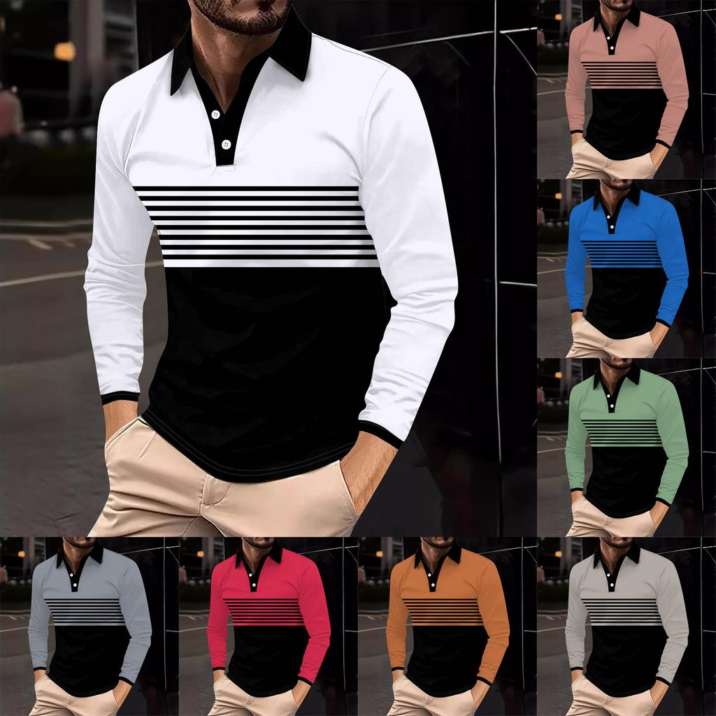 Мужская рубашка для гольфа, повседневная спортивная, с V-образным вырезом, ребристый воротник, с длинным рукавом, модная, повседневная, однотонная, однотонная, весна-лето, стандартная посадка