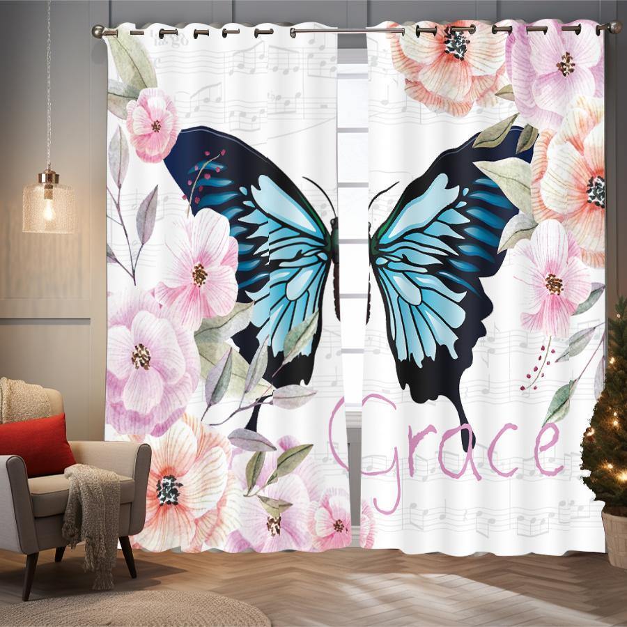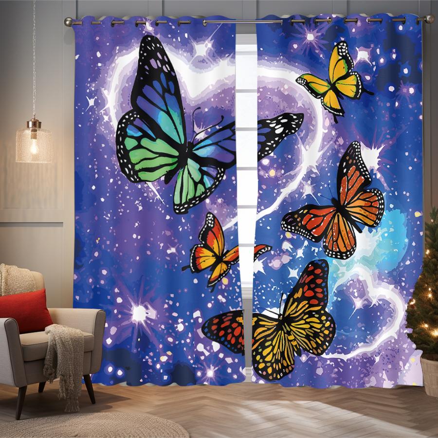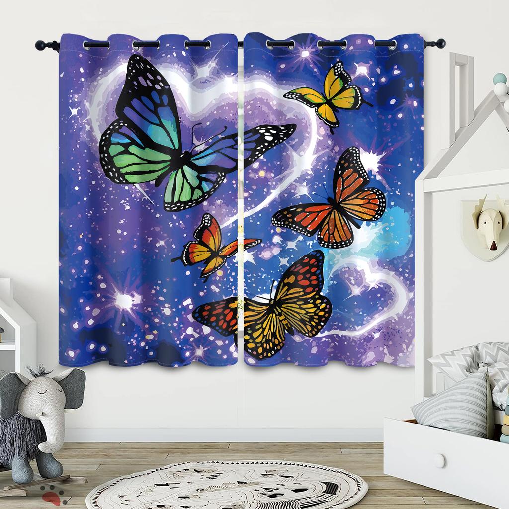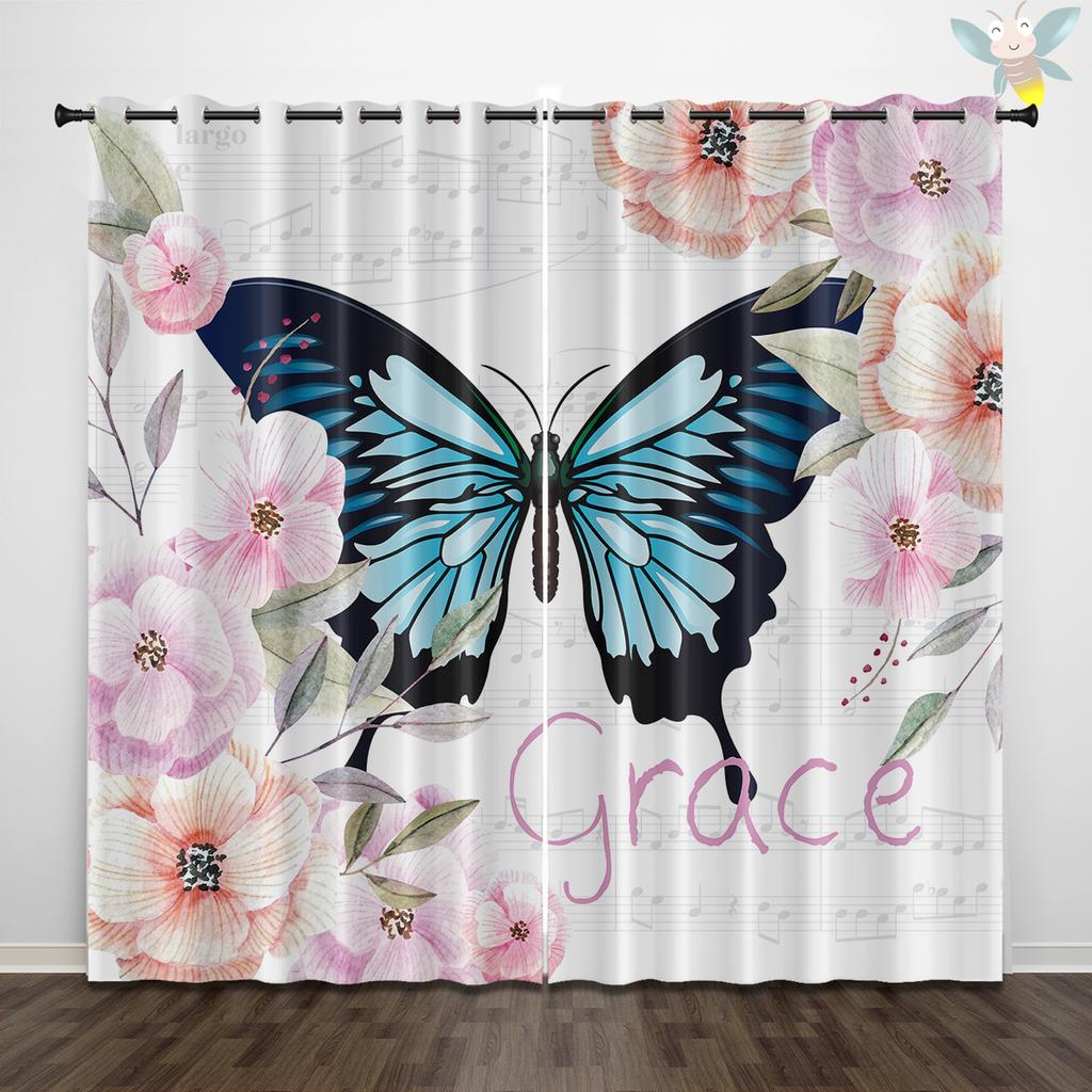 2 шт. штор с принтом в виде бабочек и цветов для декора в стиле лофт, спальни, гостиной