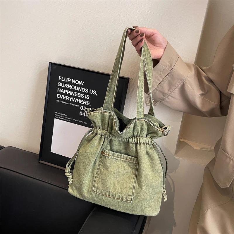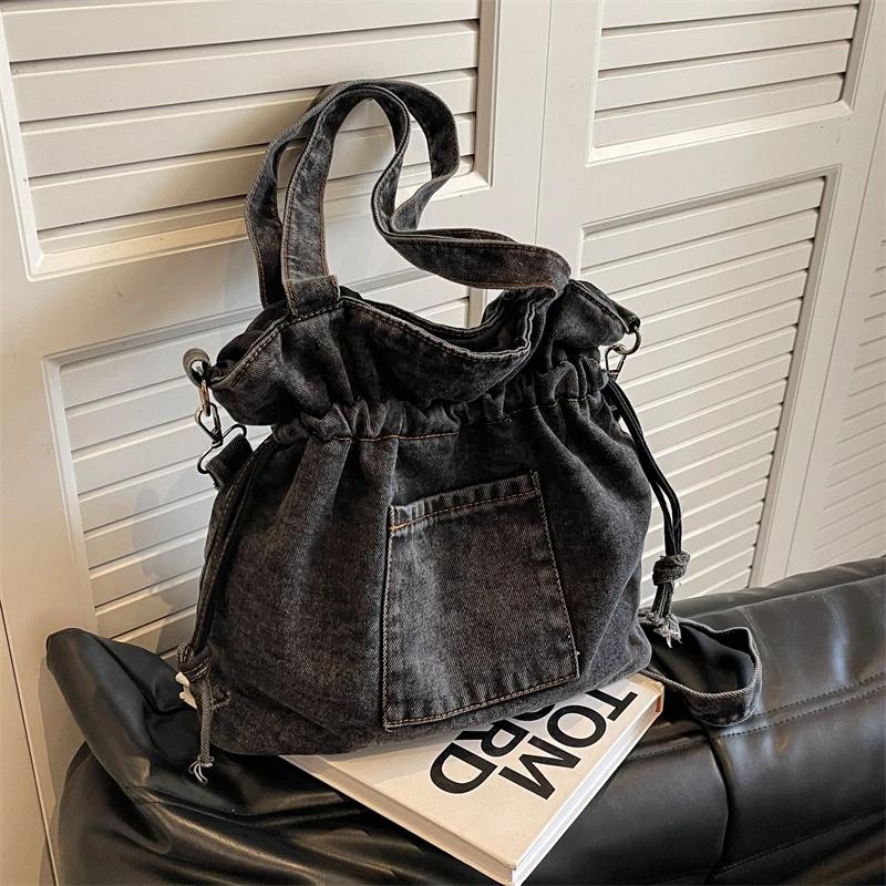 Большая вместительная сумка-ведро на одно плечо из денима, новая модная универсальная сумка с мягким плечевым ремнем