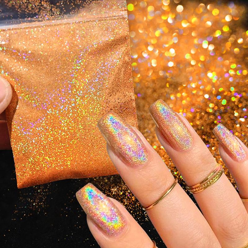 10 г россыпью мелких блесток светоотражающий гель-лак аксессуары пудра для ногтей лазерная голографическая насыпная блестка для ногтей сияющий сверкающий пигмент
