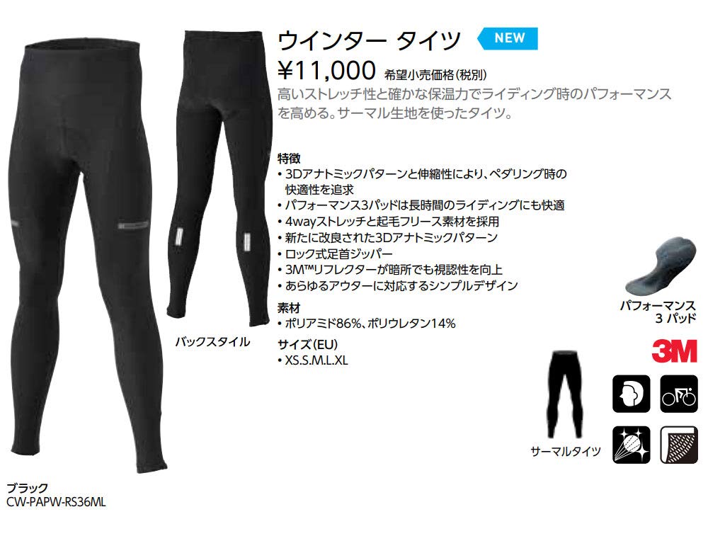 SHIMANO Зимние леггинсы для велоспорта ECWPAPWRS36ML2 Черный Средний Осень/Зима