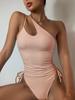 Женский сексуальный нерегулярный эластичный купальник на одно плечо, летний купальник с открытой спиной и покатым плечом, однотонный обтягивающий цельный купальник — купить товар онлайн с бесплатной доставкой по всему миру!