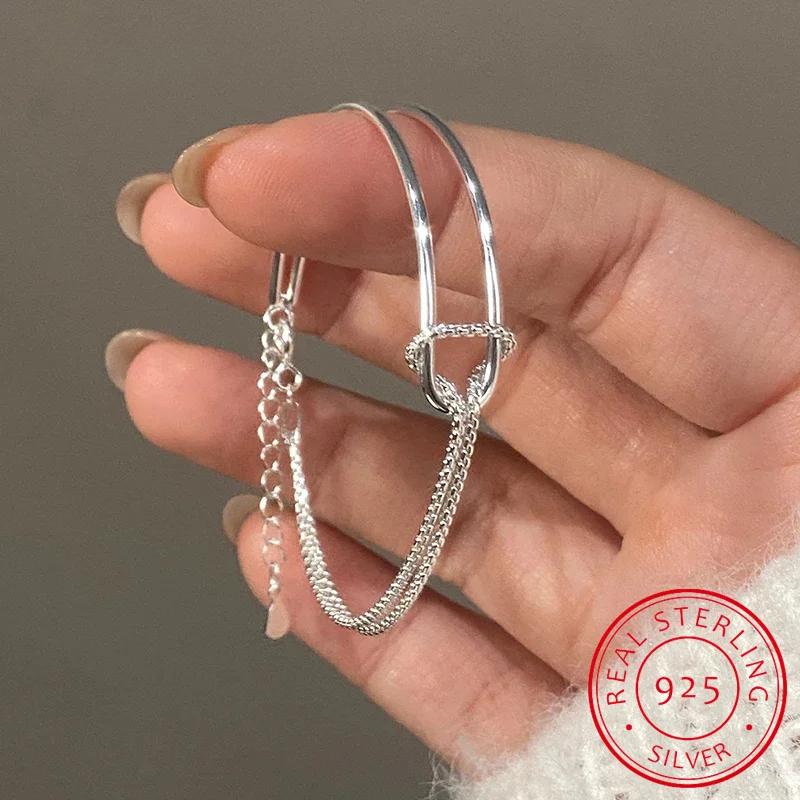 Настоящее серебро 925 пробы асимметричный двухслойный браслет-цепочка для женщин хип-хоп ювелирные изделия минималистичные аксессуары