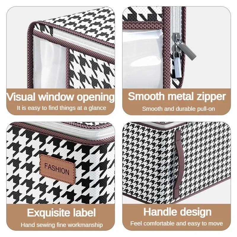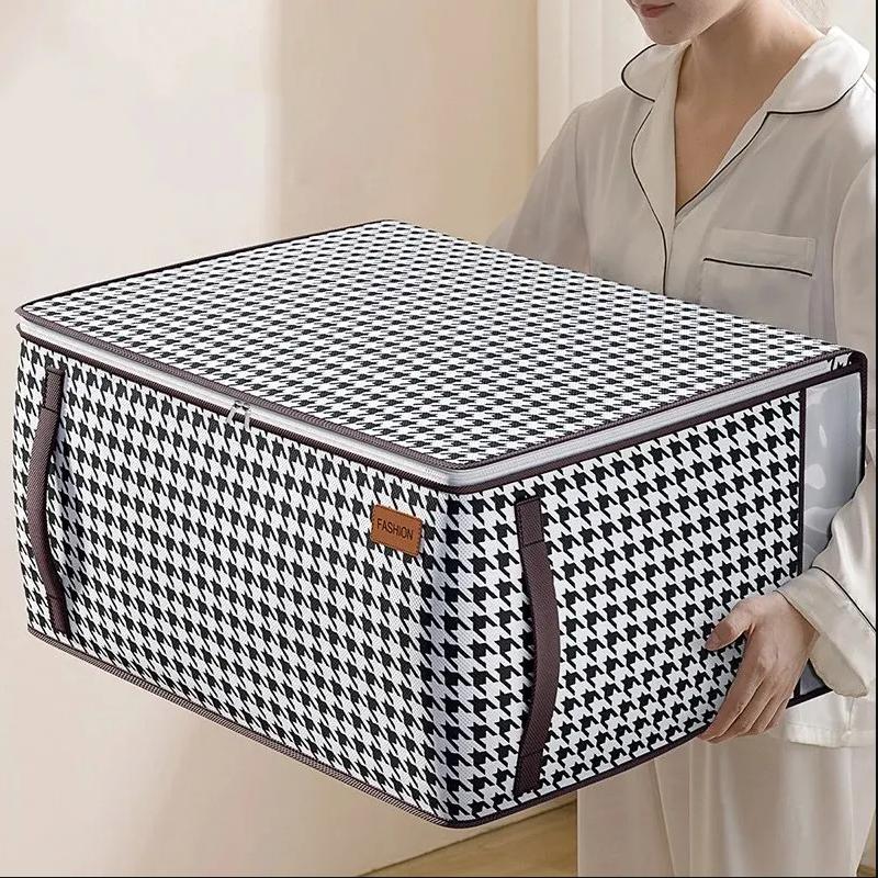 Сумка для хранения одеял, вместительная сумка для одеял, ящик для хранения одежды, домашний гардероб, пылезащитная сумка для упаковки и переезда с узором «гусиная лапка»