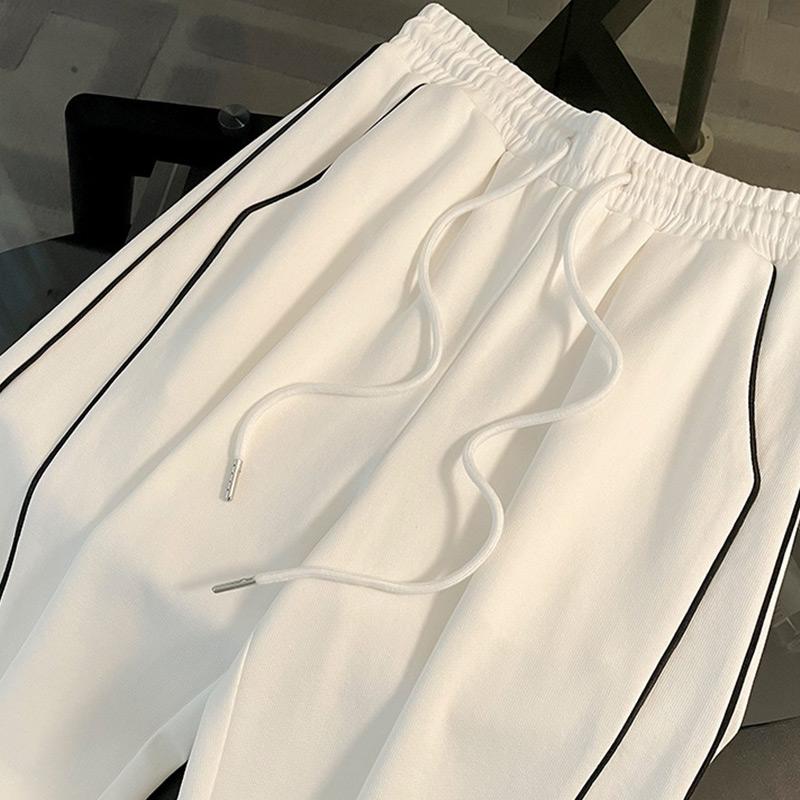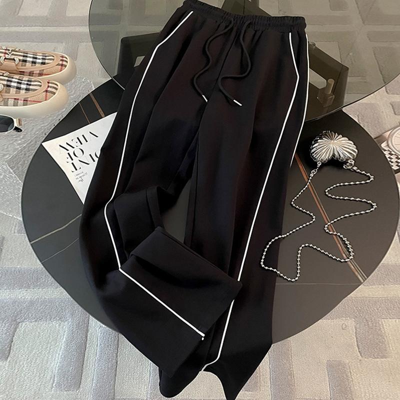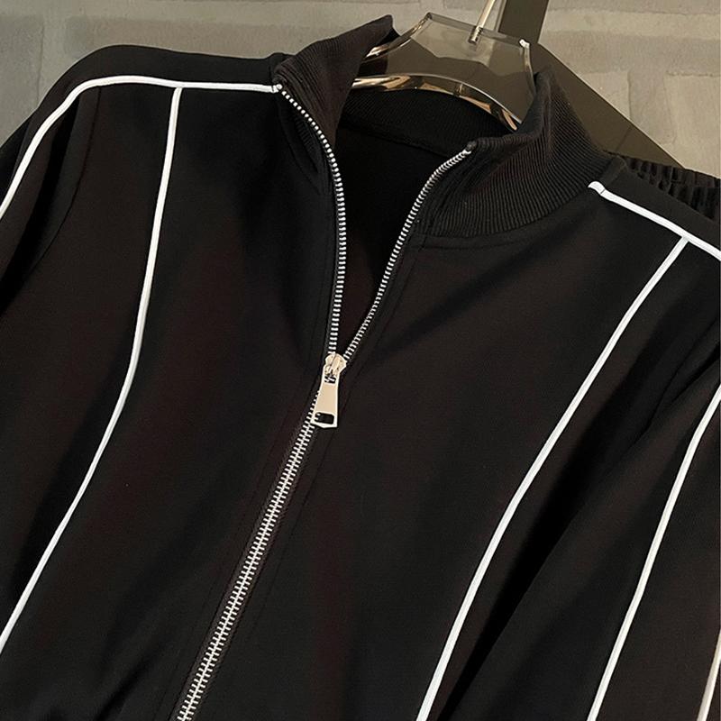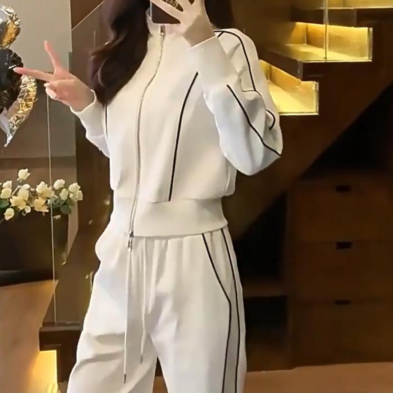 Повседневный полосатый короткий спортивный костюм с капюшоном, женский осенний свитшот на молнии, свободные эластичные широкие брюки на шнурке, комплект из двух предметов