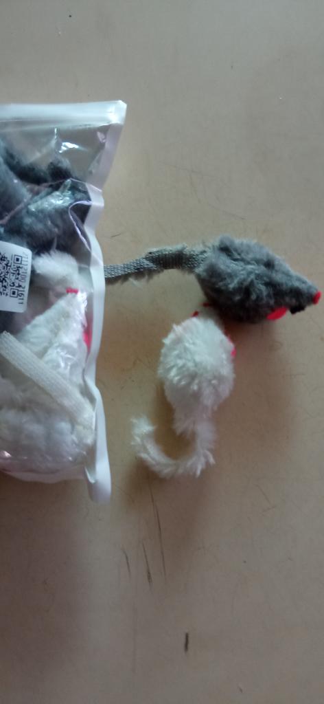 Мышки классные! Котейки с ними играются . Но не так активно как со старыми. На фото где пара - справа из предыдущего заказа , натуральный мех , хвостик натуральный кожаный , и , наверное мяты кошачьей было чуть больше ,так тех , что называется ,из лап и зубов не выпускали часами ! Но всё равно Спасибо большое продавцу и Джум !