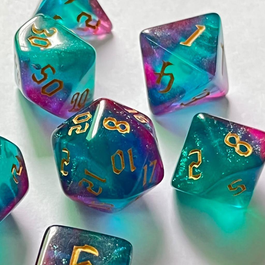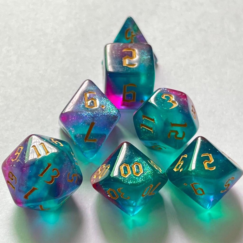 Набор из 7 игральных костей с двухцветным золотым шрифтом, многогранные игральные кости для настольной игры