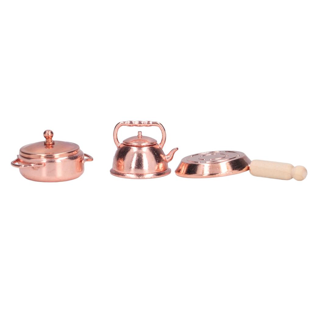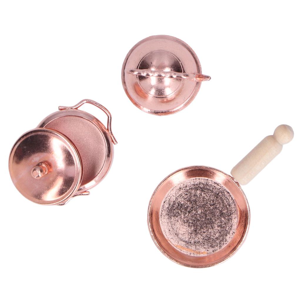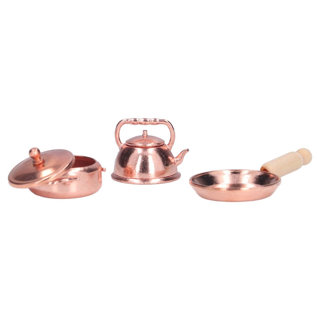 3шт 1:12 кукольных домиков, миниатюрная бронзовая сковорода, горшок, чайник, кухонный набор для приготовления пищи, набор кухонной посуды