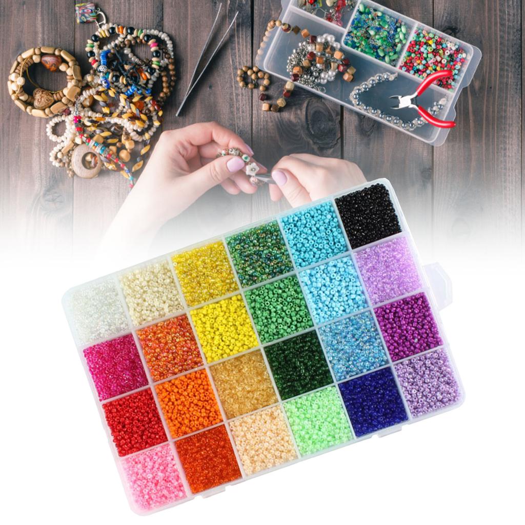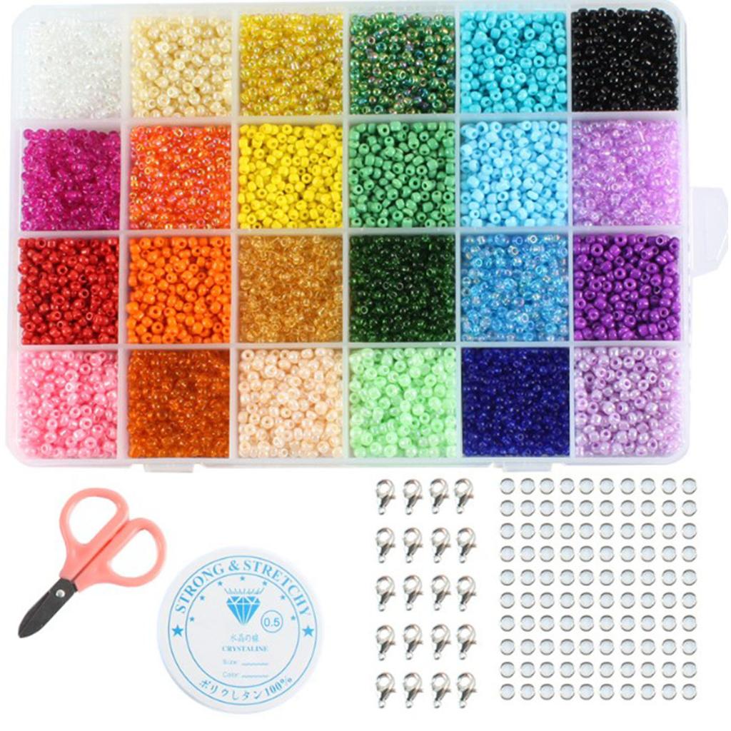 24 сетки 3 мм стеклянный бисер набор с ножницами карабин застежка эластичная нить DIY ручная работа семена