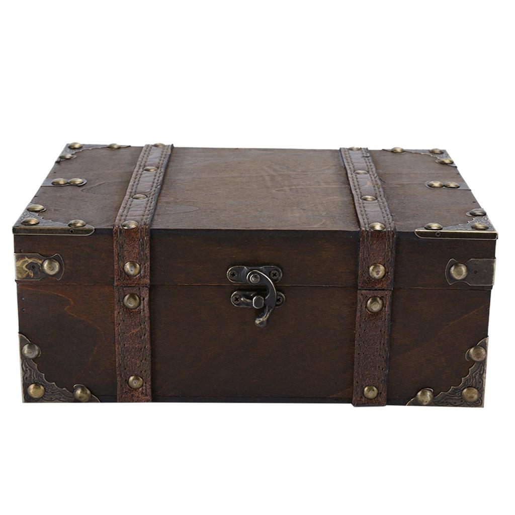Винтажный деревянный ящик для хранения, декоративный сундук для драгоценностей с замком, украшение для дома6282?2302