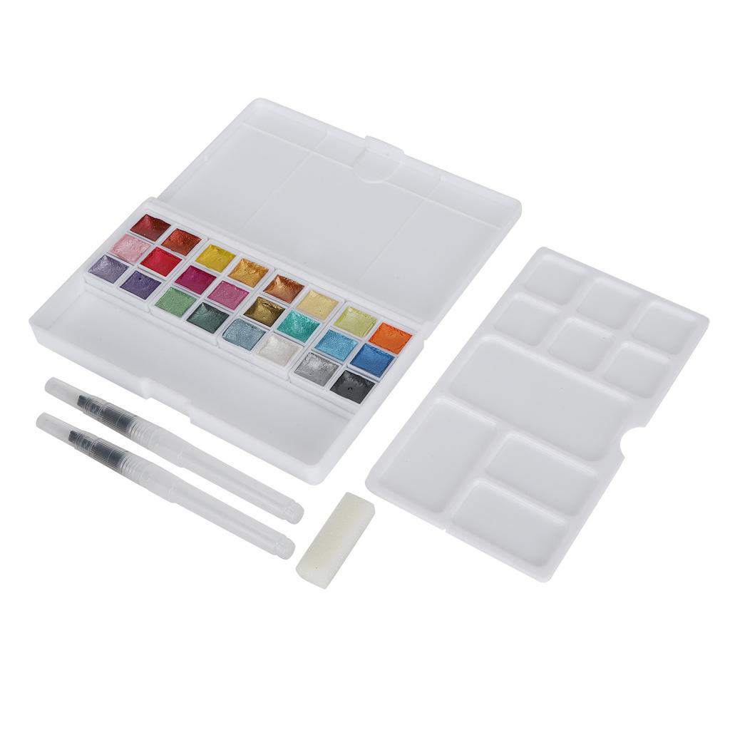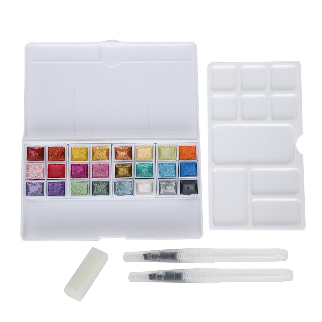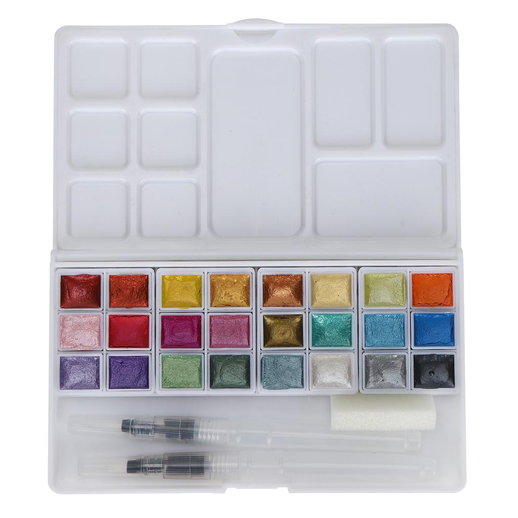Набор акварельных красок для дома и улицы, яркий цвет, перламутровый акварельный пигмент с коробкой, 24 цвета