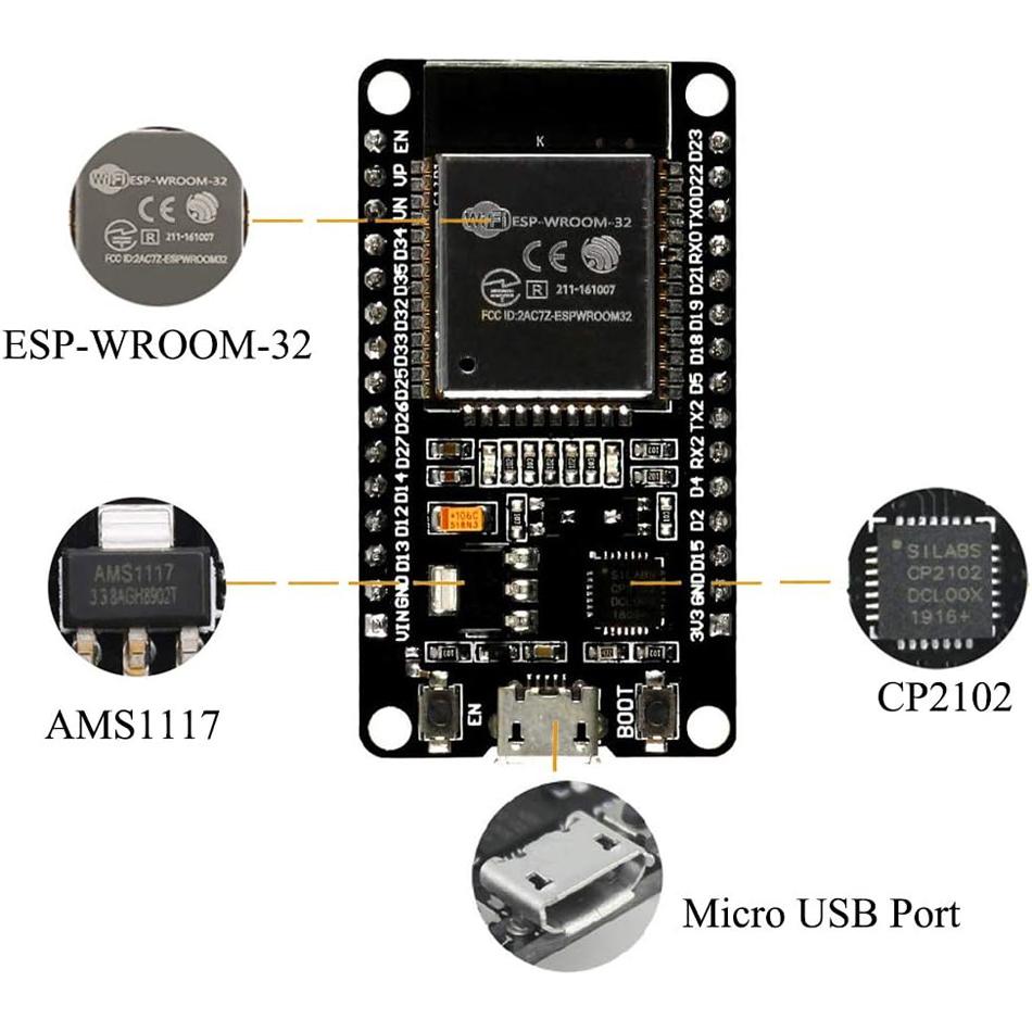 ESP-WROOM-32 ESP32 ESP-32S 2,4 ГГц двухрежимный WiFi + Bluetooth двухъядерный микроконтроллерный процессор интегрированный с антенным усилителем радиочастот — купить товар онлайн с бесплатной доставкой по всему миру!