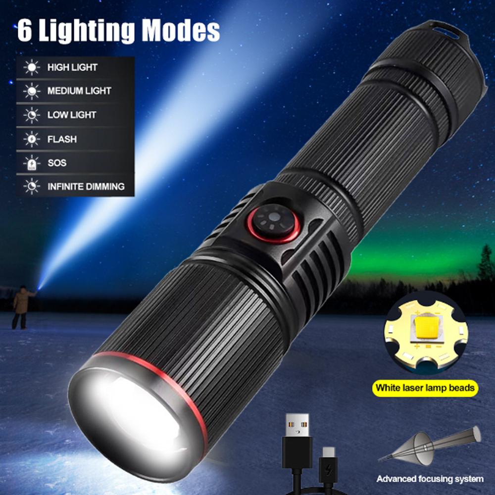 Aluminum Alloy White Laser Powerful LED High Power Flashlight Zoom Torch LightLamp Camping Outdoor Hunting Fishing Lighting Lamp